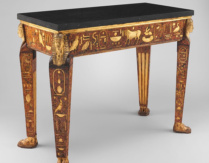 مبلهای سلطنتی مصری در کنار تزئینات زینتی و ارزشمند، با چرم نیز تزئین میشدند و مدلهایی که برای قرار دادن در فضای باز ساخته میشدند همراه با سایه بان در بالای مبل بودهاند.
