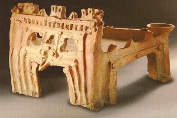 در تصویر بالا، یک نمونه از مبل در یونان باستان را با نقش گلها و خطوط هلزونی و همچنین پایههایی به شکل پنجه حیوانات (مانند مصر) مشاهده میکنید.