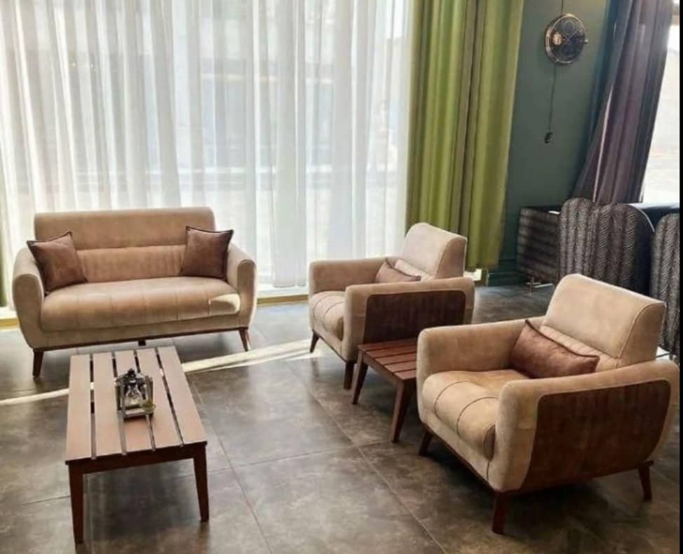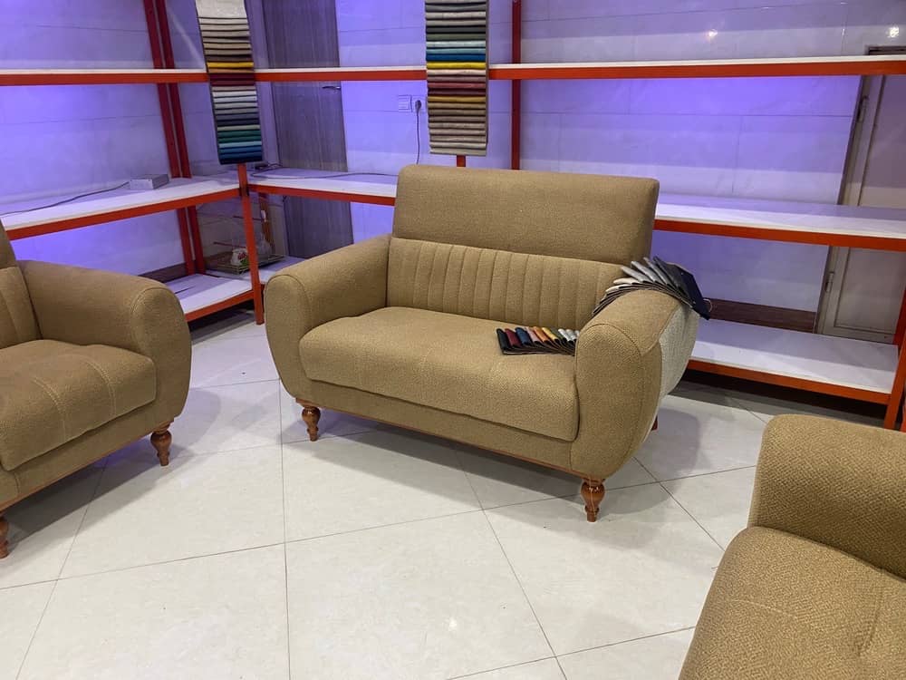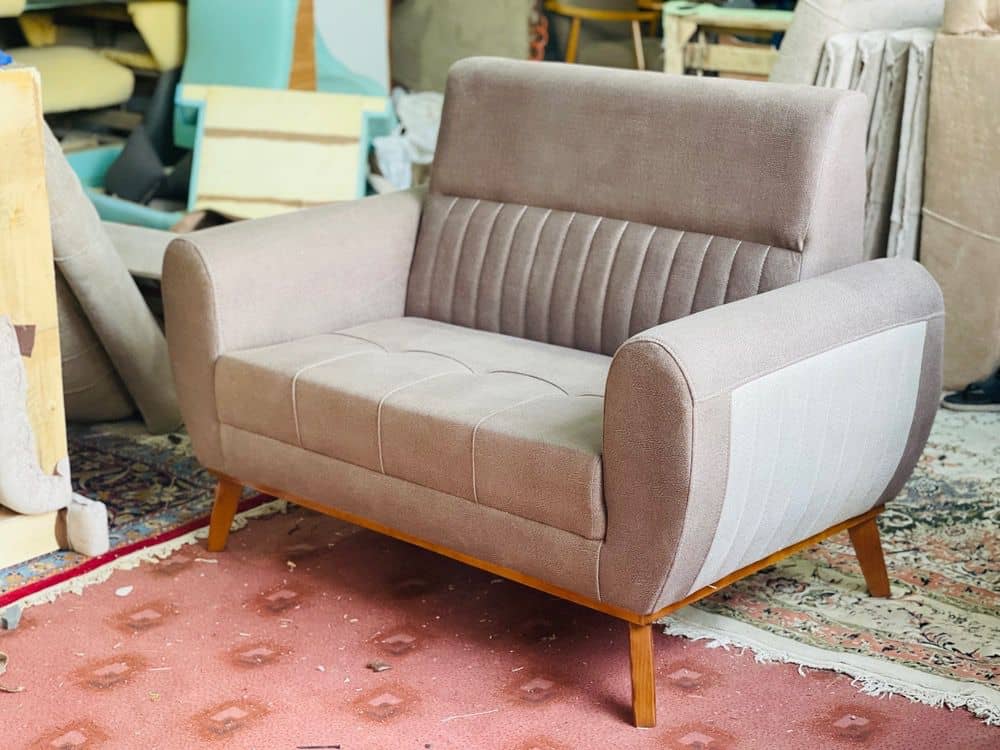 کلاف اصلی از چوب فرآوریشده و باکیفیت ساخته شده تا پایداری در طول زمان حفظ شود. نشیمن از اسفنج دانسیتهدار (۳۰ کیلویی) استفاده میکند تا بین نرمی و دوام تعادل برقرار شود و افت زودهنگام نداشته باشد. مبل راحتی پارچهی درجهیک با گزینههای متنوع رنگ و بافت ارائه میشود و مشتری میتواند رنگ چوب و پارچه را مطابق سلیقهی خود انتخاب کند. دوخت تمیز، اتصالات استاندارد و لایهکوبی دقیق در جزئیات نمایان است و به عمر مفید محصول کمک میکند.